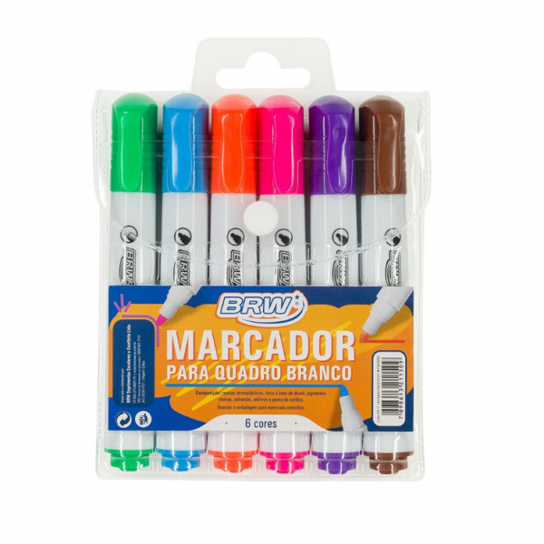 O Kit Marcador Para Quadro Branco BRW contém seis lindas cores que facilitam o destaque de tópicos e informações importantes. É ideal para uso em salas de aula ou reuniões corporativas.